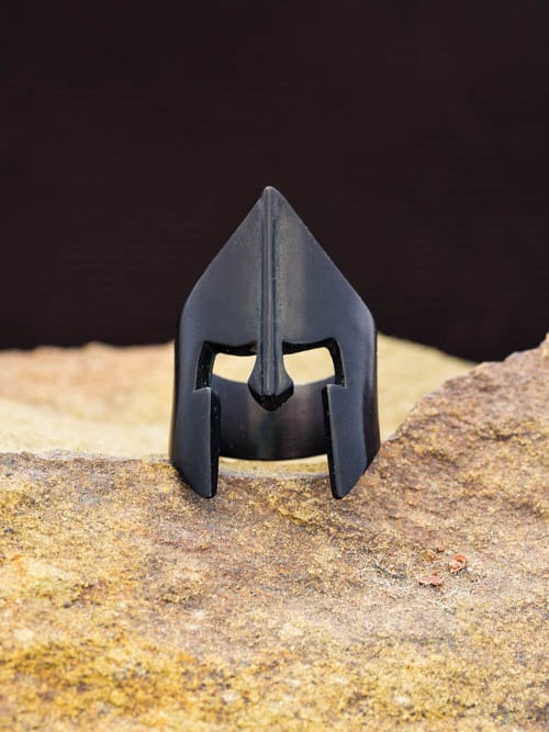 Anel Capacete Negro Espartano, em aço inoxidável negro.