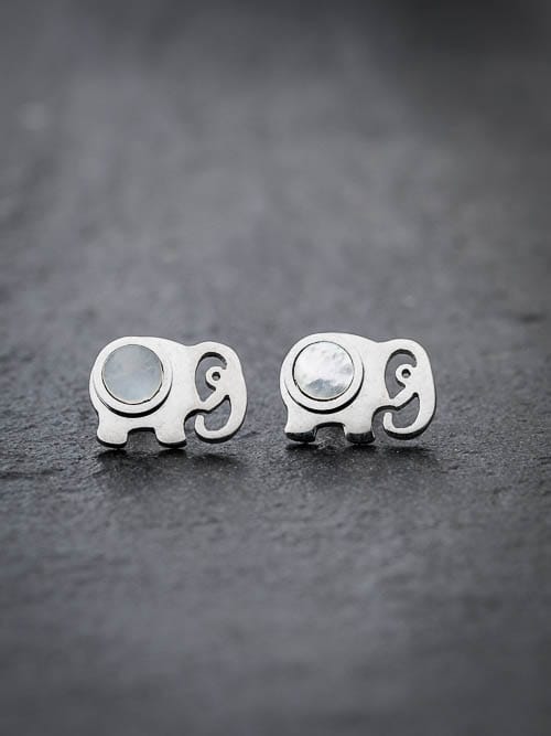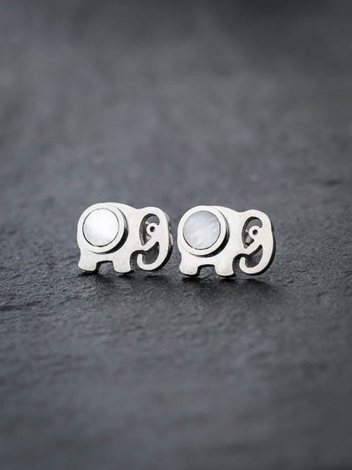 O par de brincos elefante, é adornado por um circulo em madrepérola com os seus reflexos naturais.