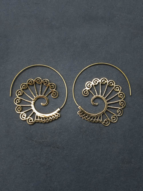 Brincos Pavão, de estilo étnico, em formato de espiral