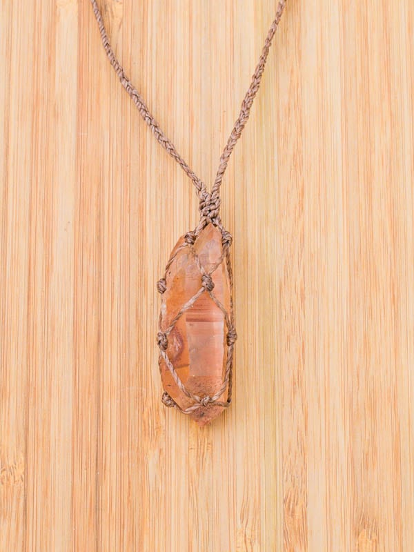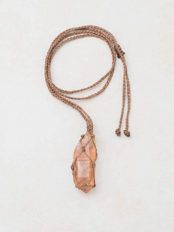 Colar Koan Quartzo Hematóide, concebido artesanalmente com técnicas de macramé.
