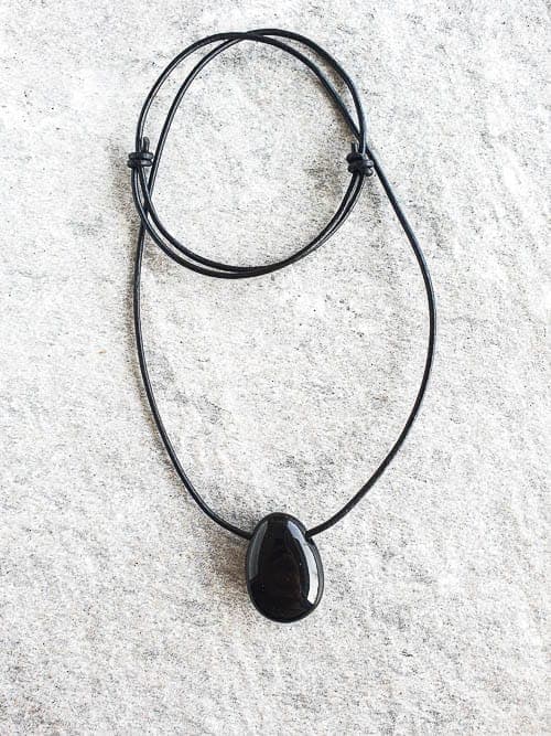 O colar Kuro Obsidiana Negra é concebido com cabedal negro e pedra natural.