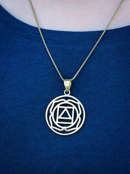 O colar Muladhara representa o símbolo do chakra raíz. Este que é o primeiro chakra, quando em estado de equilíbrio, proporciona à pessoa um desenvolvimento saudável, estabilidade física e emocional.