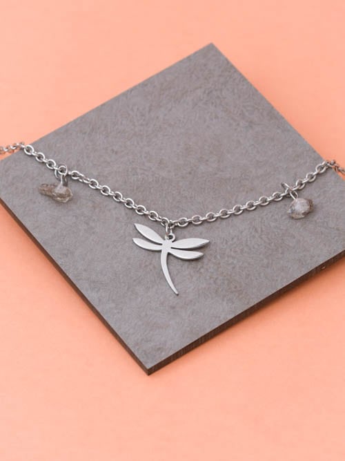 Colar Niji Quartzo Herkimer concebido com aço inoxidável e pedras naturais.