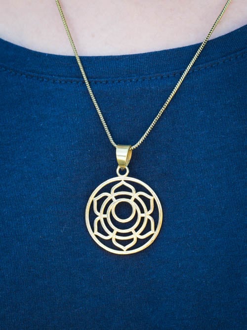 O colar Svadhishthana representa o símbolo do chakra sacro. Este que é o segundo chakra, quando em estado de equilíbrio, permite à pessoa aceitar as mudanças de maneira natural e desfrutar dos prazeres da vida.