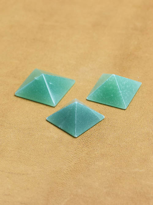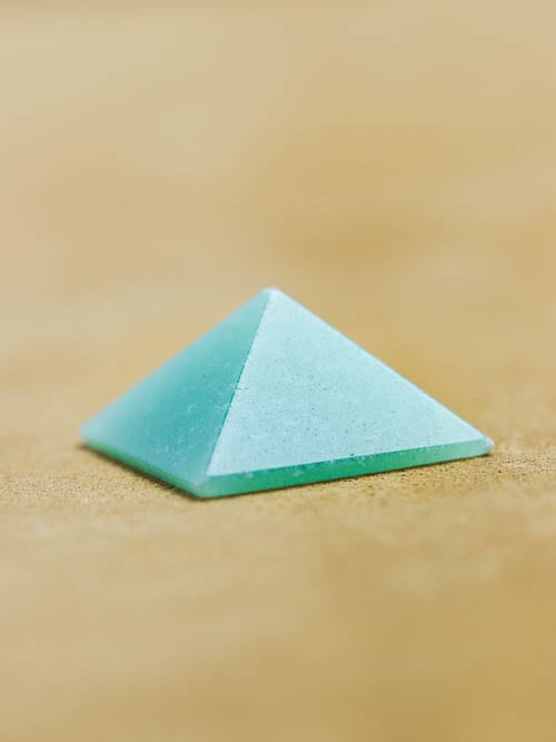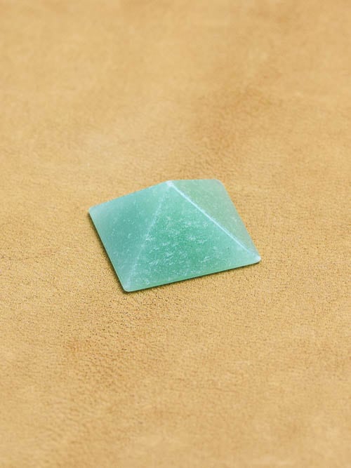 Mini Pirâmide de Quartzo Verde, esculpida artesanalmente, com uma base de 2x2cm.