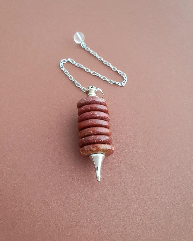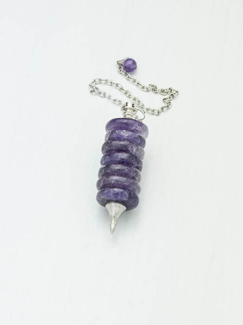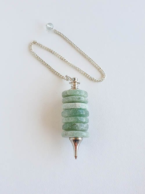 Na extremidade da corrente de metal, está uma esfera de quartzo. Deve manter essa esfera no centro da mão, quando segura o pêndulo, para aumentar a conexão enquanto o usa.