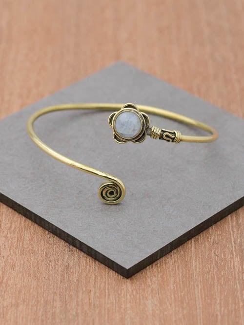 Esta pulseira feminina tem um design de uma pequena flor com a pedra preciosa no centro. Poderá ajustar este modelo ao tamanho do seu pulso.