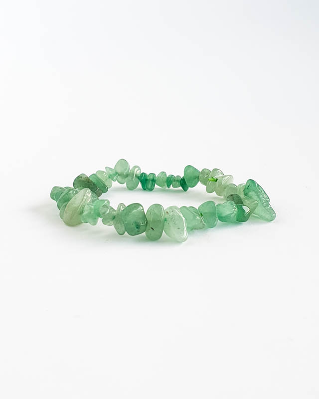 A pulseira Pura Quartzo Verde é feita à mão com carinho, usando pedras naturais de formato irregular.