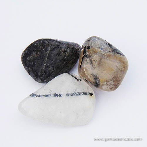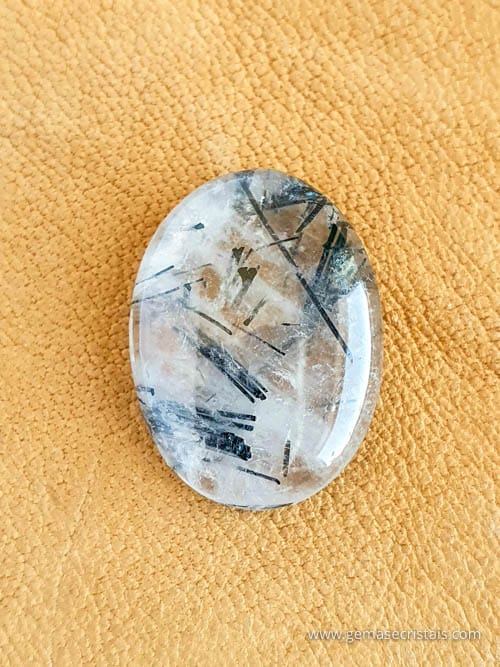 O Quartzo Turmalinado é um cristal branco a transparente, com inclusões de veios negros que atravessam o seu interior. Quando tem uma quantidade grande de inclusões, parece uma pedra de cor negra.